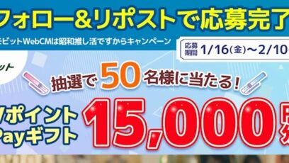 SMBCモビット‐モビットWebCMは昭和推し活ですからキャンペーン 賞品:VポイントPayギフト15,000円分(50名様) 締切:2026年2月10日(火) 公式...