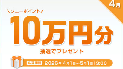 My Sonyキャンペーン 賞品:ソニーポイント10万円分(5名様) 締切:2026年5月1日(金)13:00 My Sonyにサインイン&応募で、ソニーポイント「1...
