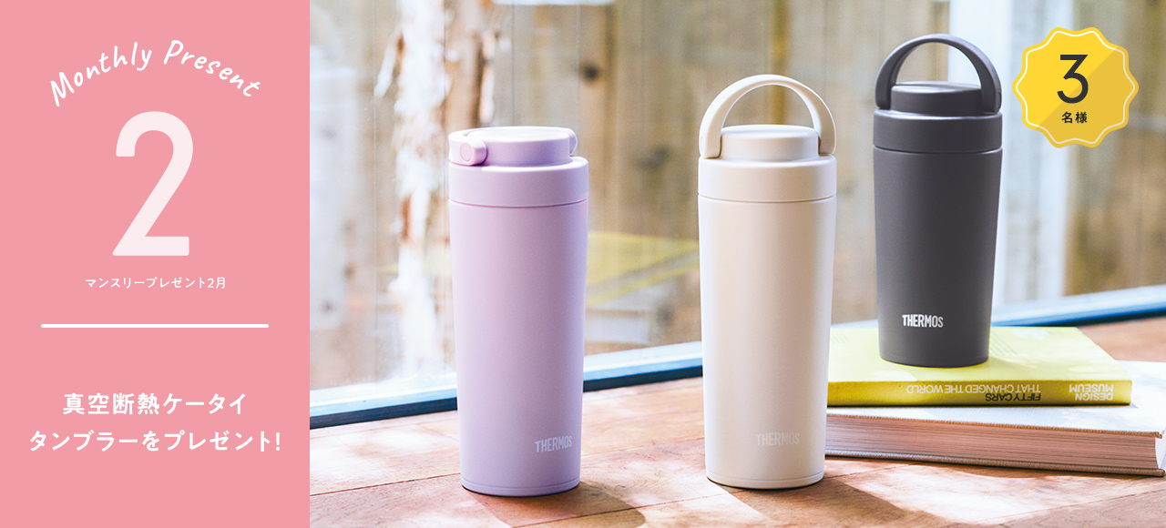 真空断熱ケータイタンブラーを3名様にプレゼント 2026.02.02クラブサーモス‐マンスリーキャンペーン 賞品:真空断熱ケータイタンブラー(3名様) 締切:2026年2月28日(土)ポイントを使ってプレゼントをゲット! ご応募には会員登録/ログインが必要です。※詳細はキャンペーンページにてご確認ください。応募はこちらから