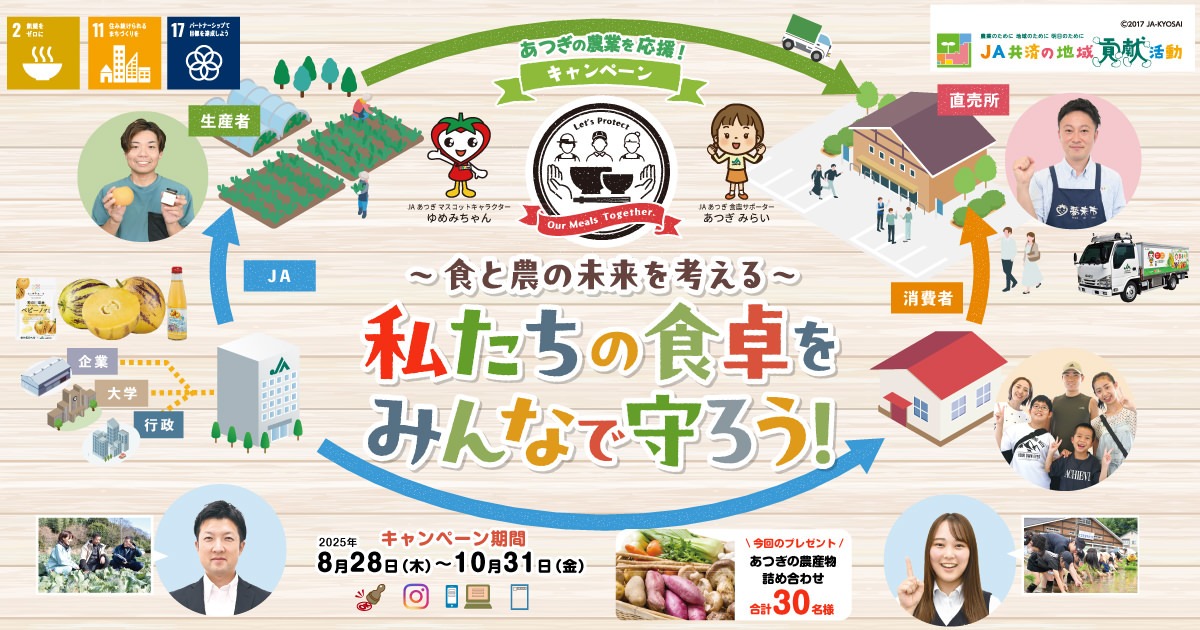 あつぎの農産物詰め合わせを30名様にプレゼント 2025.09.20JAあつぎ‐私たちの食卓をみんなで守ろう!あつぎの農業を応援!キャンペーン 賞品:あつぎの農産物詰め合わせ(30名様) 締切:2025年10月31日(金)合計30名様にあつぎの農産物詰め合わせをプレゼント!※詳細はキャンペーンページにてご確認ください。応募はこちらから