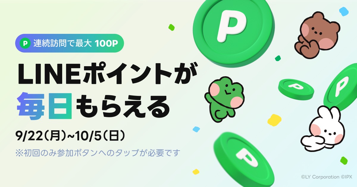 賞品:LINEポイント最大100P(毎日先着50万名様)