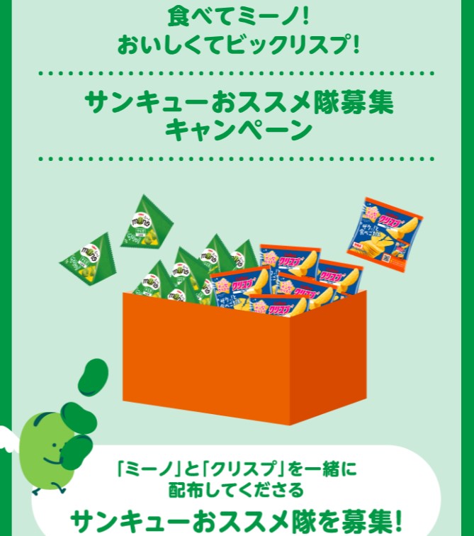 カルビー株式会社‐食べてミーノ!おいしくてビッククリスプ! サンキューおススメ隊募集キャンペーン