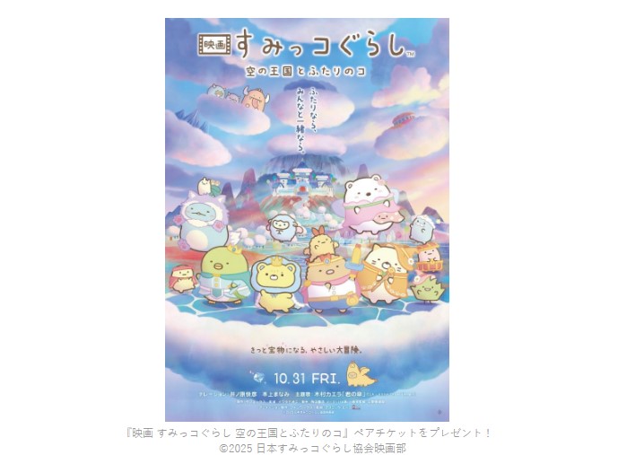 『映画 すみっコぐらし 空の王国とふたりのコ』ペアチケットを5組10名様にプレゼント 2025.09.29 2025.09.28東京バーゲンマニア‐プレゼントキャンペーン 賞品:『映画 すみっコぐらし 空の王国とふたりのコ』ペアチケット(5組10名様) 締切:2025年10月16日(木)ご応募には会員登録/ログインが必要です。※詳細はキャンペーンページにてご確認ください。応募はこちらから