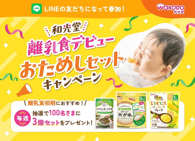 【LINE懸賞】和光堂 離乳食デビュー3個セットを毎週100名様にプレゼント