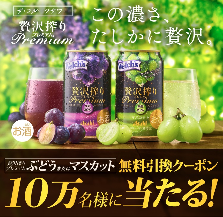 【毎日・LINE懸賞】アサヒ贅沢搾りプレミアム 350ml コンビニ無料引き換えクーポンが10万名様にその場で当たる!