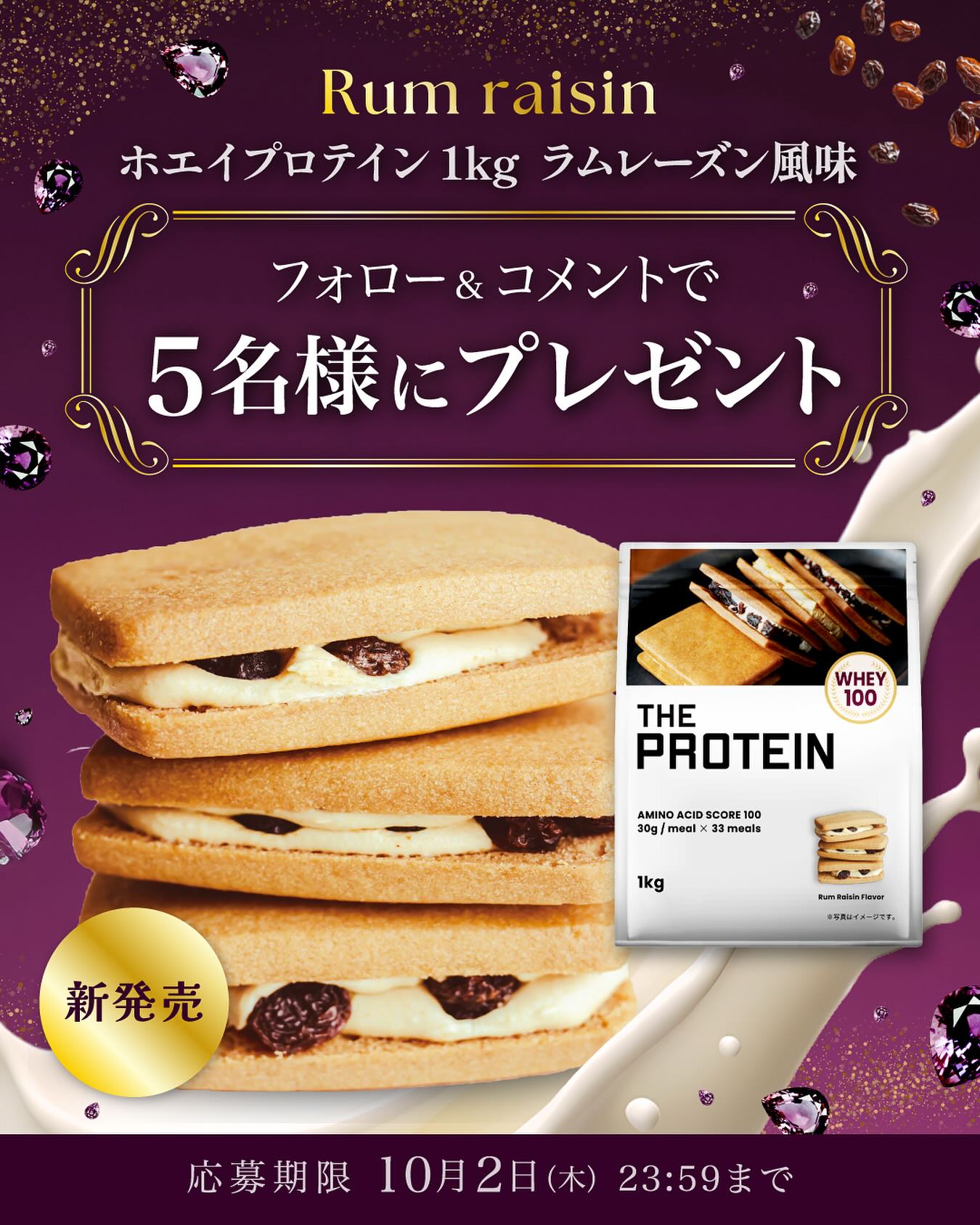 賞品:ホエイプロテインラムレーズン風味 1kg(5名様)