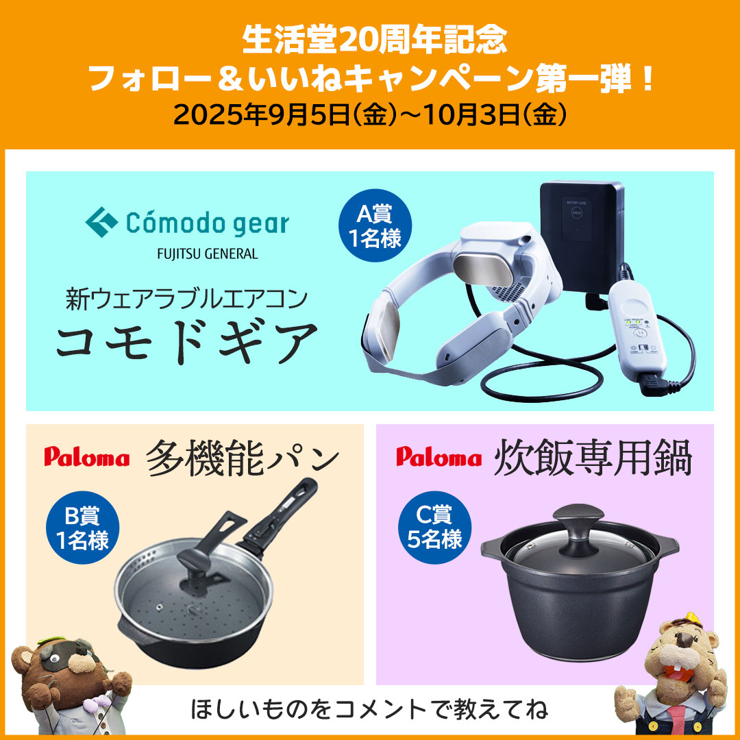 【Instagram懸賞】富士通ゼネラル ネッククーラー、パロマ多機能パン、パロマ炊飯専用鍋を合計7名様にプレゼント
