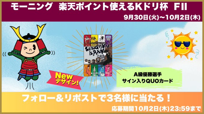 賞品:A級優勝選手サイン入り小田原競輪QUOカード(3名様)