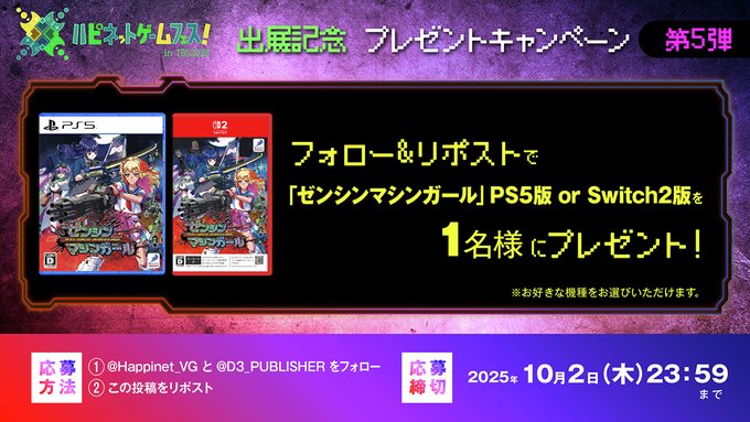 @Happinet_VG と @D3_PUBLISHERをフォロー&キャンペーン対象ポストをリポストしてご応募ください。