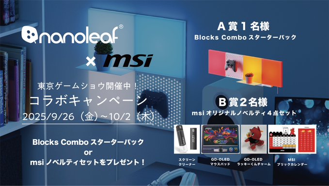 @MSI_JP @NanoleafJP をフォロー&キャンペーン対象ポストをリポストしてご応募ください。