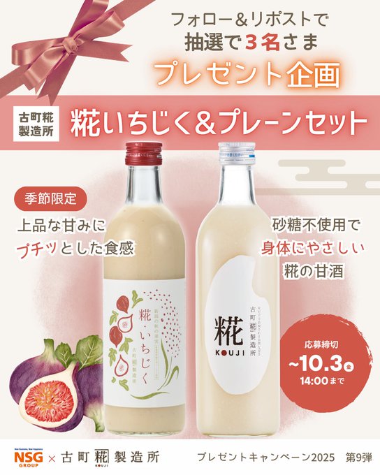 賞品:古町糀製造所 糀いちじく&プレーンセット(3名様)