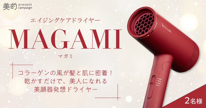 賞品:美顔器発想の新ドライヤー「MAGAMI」(2名様)