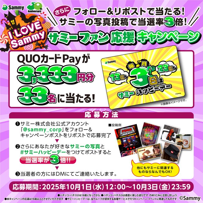 サミー株式会社‐今月3日は #サミーハッピーデー キャンペーン