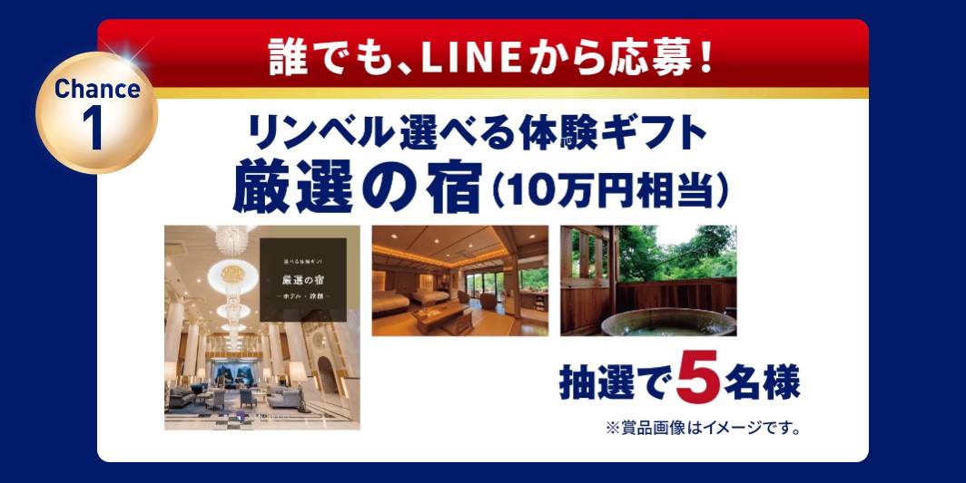 賞品:リンベル 選べる体験ギフト 厳選の宿(10万円相当)(5名様)