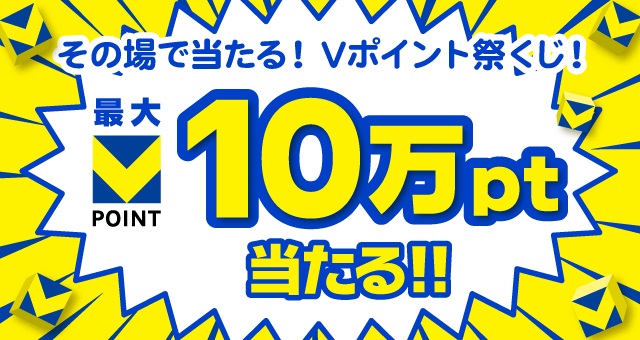 【毎日応募】Vポイント最大10万ポイントが総計200,001名様にその場で当たる! 2025.10.03Vポイント祭くじ 賞品: 1等:Vポイント10万pt 1本 2等:Vポイント1pt 20万本 締切:2025年10月31日(金)毎日1回くじを引いて、最大Vポイント10万ptが当たるチャンス!※詳細はキャンペーンページにてご確認ください。応募はこちらから