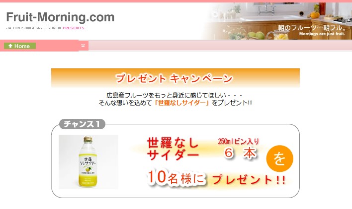 世羅なしサイダー 250ml 6本セットを10名様にプレゼント 2025.10.03JA広島果実連 プレゼントキャンペーン 賞品:世羅なしサイダー 250mlビン入り 6本セット(10名様) 締切:2025年10月31日(金)応募フォームより必要事項を入力してご応募ください。※詳細はキャンペーンページにてご確認ください。応募はこちらから
