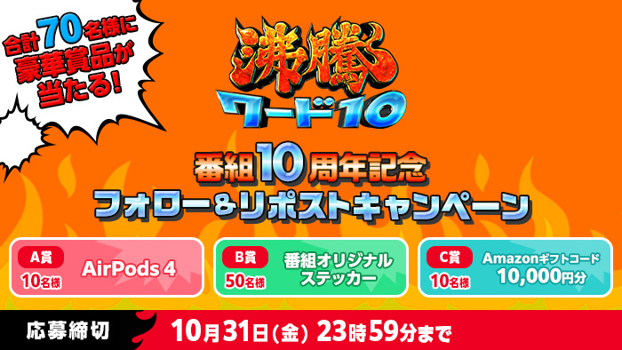 【X懸賞】AirPods 4、番組オリジナルステッカー、Amazonギフト券10,000円分を合計70名様にプレゼント