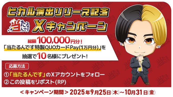 賞品:当たるんです 特製QUOカードPay 1万円分(10名様)