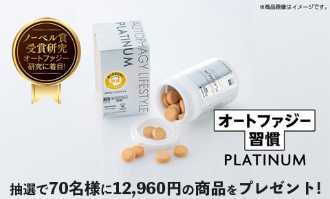 「オートファジー習慣プラチナム」30日分を70名様にプレゼント 2025.10.04Fun! J:COM‐プレゼントキャンペーン 賞品:「オートファジー習慣プラチナム」30日分(70名様) 締切:2025年10月31日(金)応募フォームより必要事項を入力してご応募ください。※詳細はキャンペーンページにてご確認ください。応募はこちらから