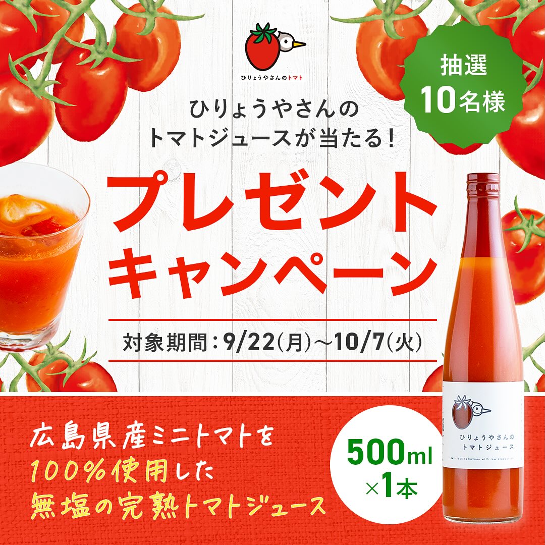 賞品:ひりょうやさんのトマトジュース 500ml(10名様)