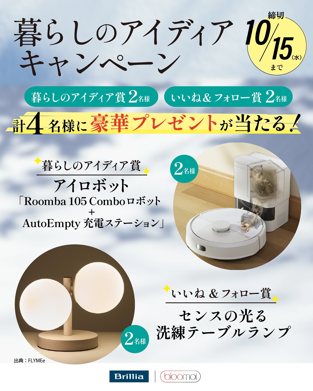 1.東京建物 bloomoi公式Instagramアカウント @brillia_bloomoi ブリリア公式Instagramアカウント @brillia.officialの両方をフォロー