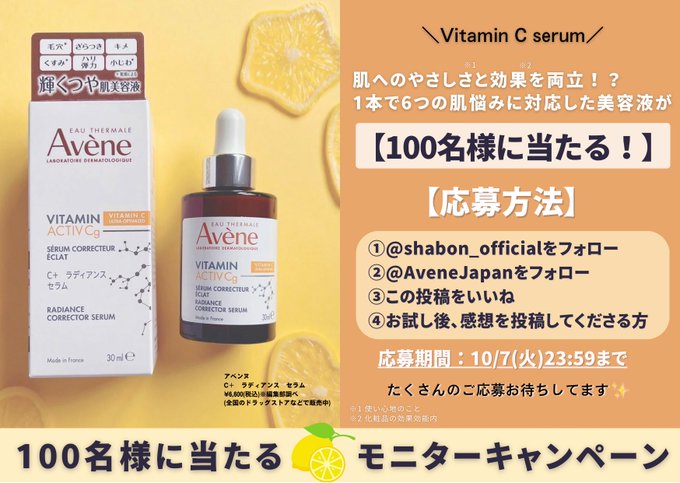 賞品:アベンヌ C+ ラディアンス セラム(100名様)