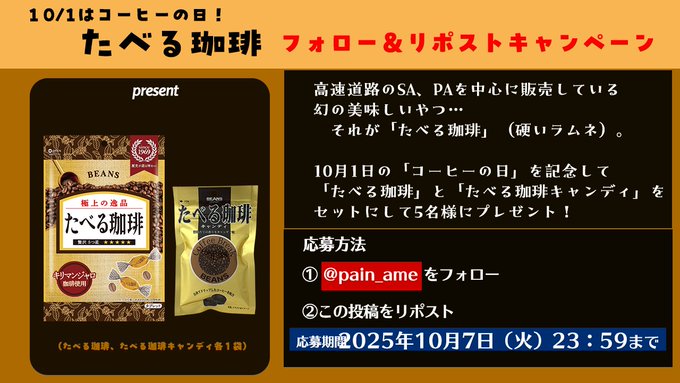 賞品:たべる珈琲とたべる珈琲キャンディ(5名様)