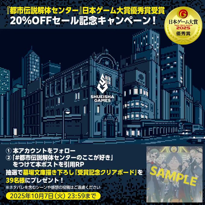 集英社ゲームズ‐日本ゲーム大賞2025優秀賞受賞 20%オフセール記念キャンペーン