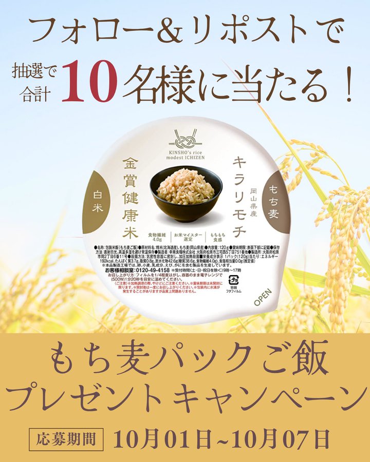 【X・Instagram懸賞】金賞の一膳 金賞健康米×キラリモチを10名様にプレゼント