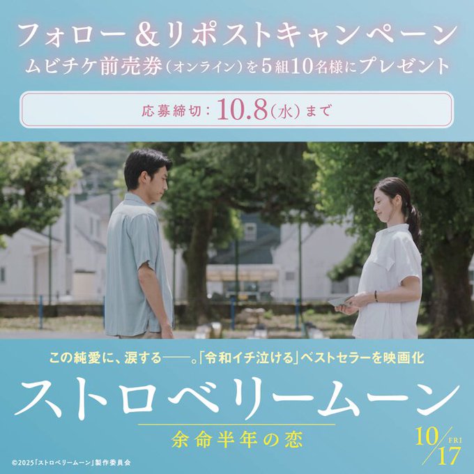 賞品:映画『ストロベリームーン 余命半年の恋』ムビチケ前売券(オンライン)(5組10名様)