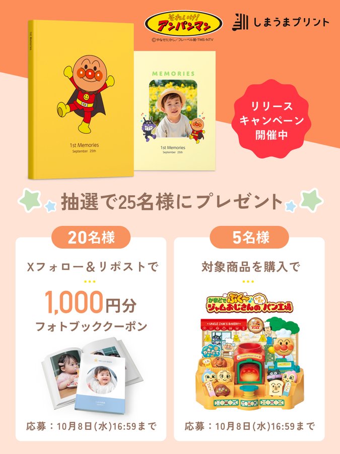 賞品:フォトブッククーポン1,000円分(20名様)