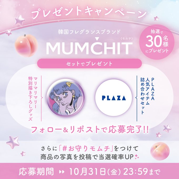 賞品:マリマリマリー特別描き下ろしグッズとPLAZA人気アイテム詰め合わせ(30名様)