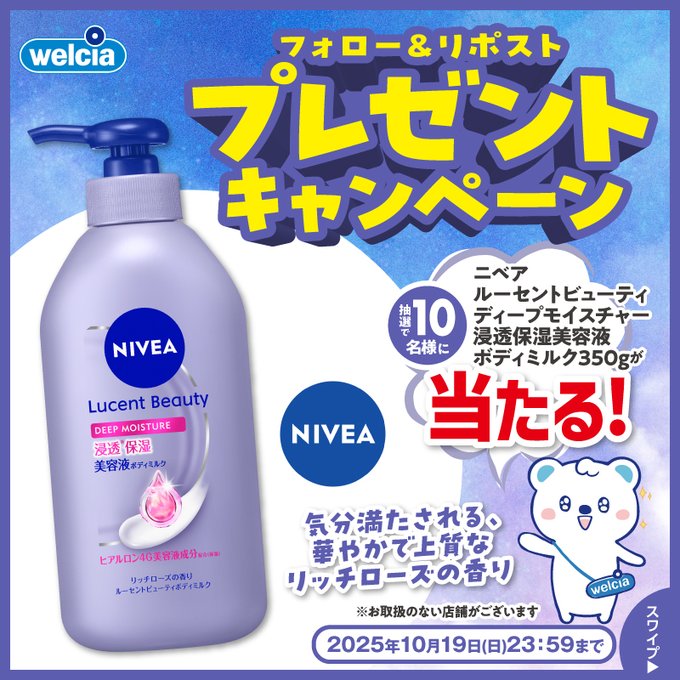 賞品:ニベア ルーセントビューティ ディープモイスチャー 浸透保湿美容液 ボディミルク350g(10名様)