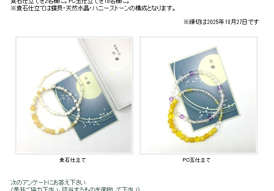 二輪の創作ブレス「月輪(げつりん・がちりん)」を12名様にプレゼント 2025.10.07 2025.10.06鎌倉花寺巡り‐プレゼントコーナー 賞品:二輪の創作ブレス「月輪(げつりん・がちりん)」(12名様) 締切:2025年10月27日(月)アンケートに答えてご応募ください。※詳細はキャンペーンページにてご確認ください。応募はこちらから