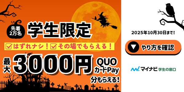 参加資格:マイナビ学生の窓口会員の高校生&大学生(Qwi認証必須)