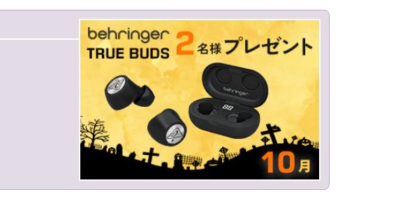 賞品:BEHRINGER ワイヤレスイヤホン TRUE BUDS(2名様)