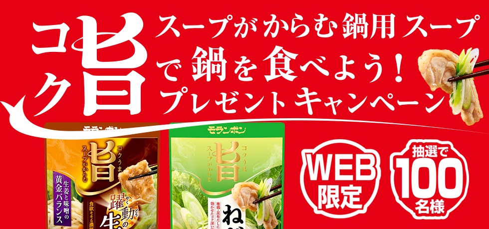 モランボン‐コク旨スープがからむ鍋用スープで鍋を食べよう!プレゼントキャンペーン