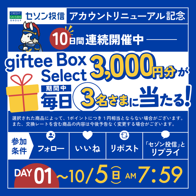 賞品:giftee Box Select 3,000円分(毎日3名様)