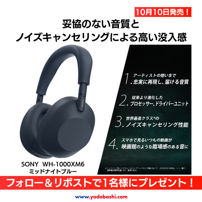 賞品:Bluetoothヘッドホン ソニー WH-1000XM6(1名様)