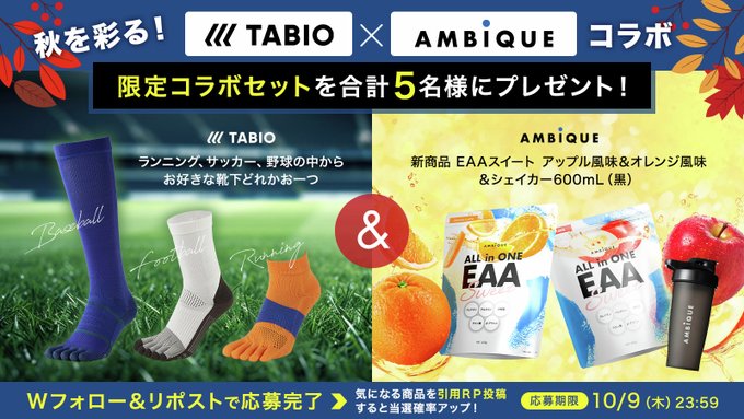 @TABIOSPORTSと@AMBiQUE_JPをフォロー&キャンペーン対象ポストをリポストしてご応募ください。