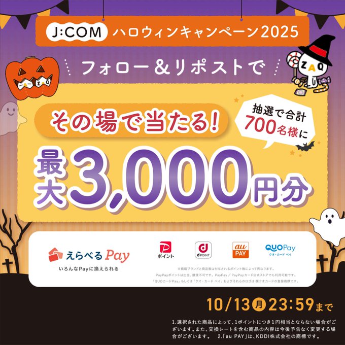 J:COM公式X(Twitter)アカウントをフォロー&キャンペーン対象ポストをリポストして、記載されているURLからご応募ください。