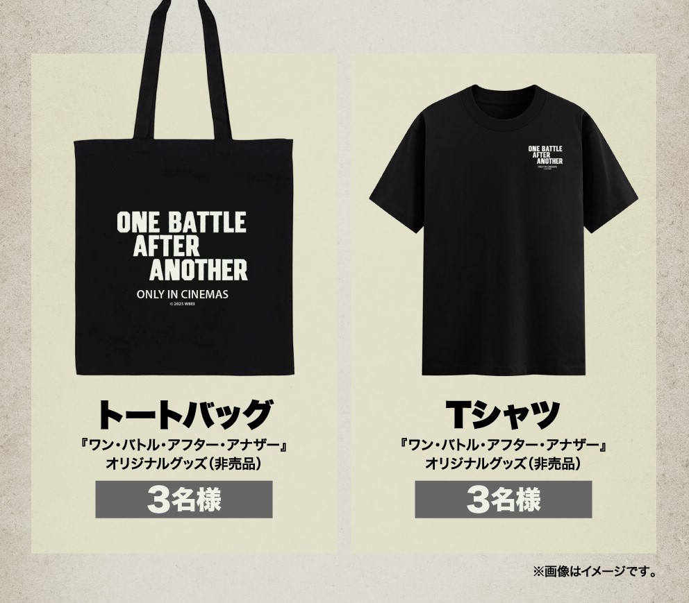 賞品:映画『ワン・バトル・アフター・アナザー』トートバッグ、Tシャツ(合計6名様)