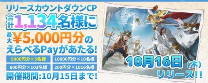 賞品:えらべるPay最大5,000円分(1,134名様)