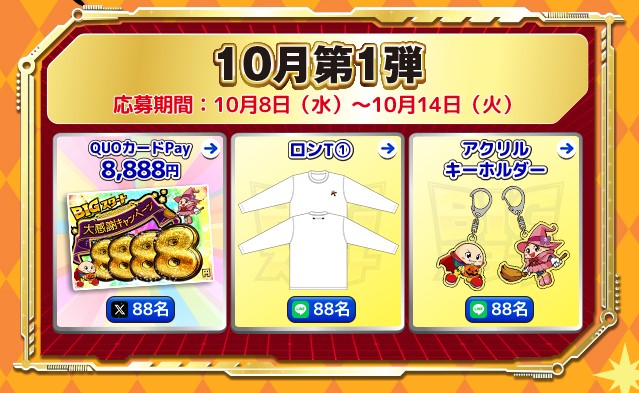 【X・LINE懸賞】QUOカードPay8,888円分、ロンT、アクリルキーホルダーを合計264名様にプレゼント