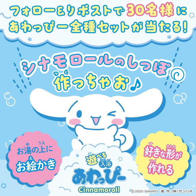 【X懸賞】あわっぴー全種セットを30名様にプレゼント 2025.10.10アース製薬‐フォロー&リポストキャンペーン 賞品:あわっぴー全種セット(30名様) 締切:2025年10月28日(火)公式X(Twitter)アカウントをフォロー&キャンペーン対象ポストをリポストしてご応募ください。※詳細はキャンペーンページにてご確認ください。応募はこちらから