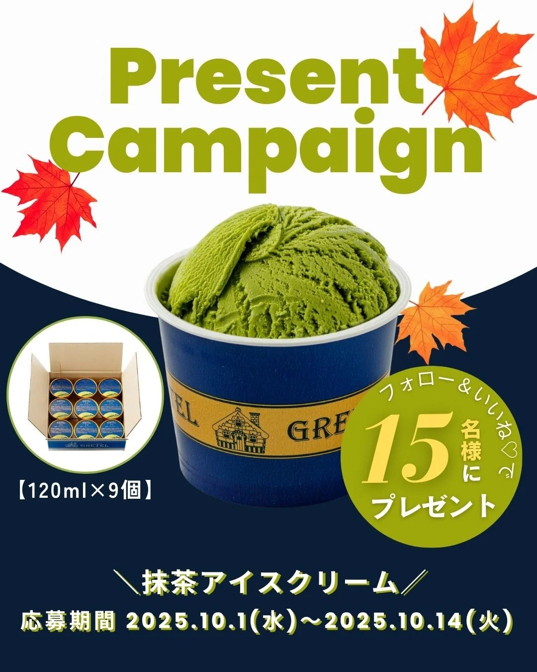 賞品:抹茶アイスクリーム 120ml×9個(15名様)