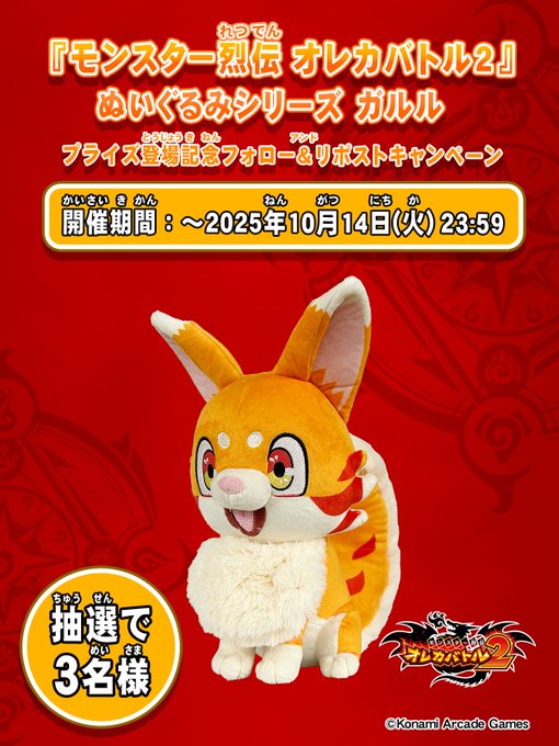 賞品:モンスター烈伝 オレカバトル2 ぬいぐるみシリーズ ガルル(3名様)