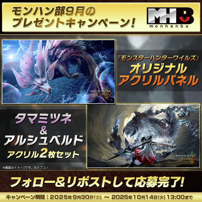 【X懸賞】『モンスターハンターワイルズ』オリジナルアクリルパネル2枚セットを2名様にプレゼント