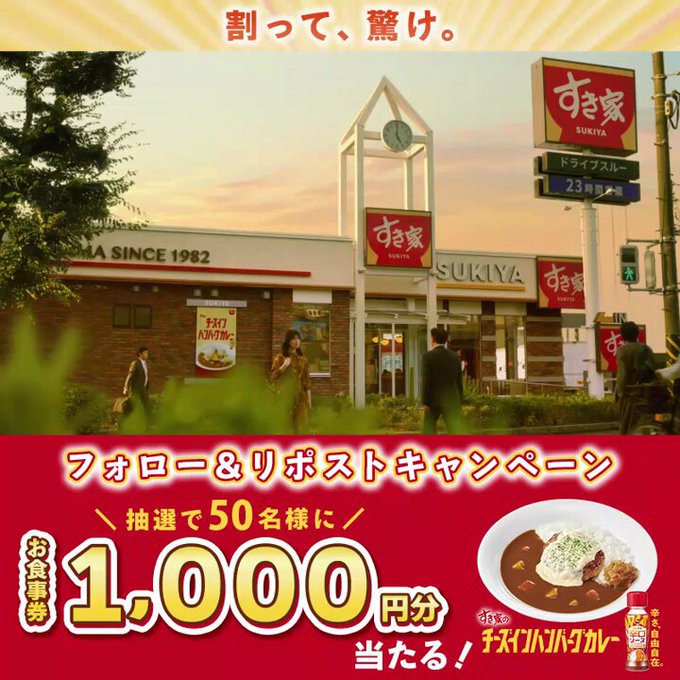 すき家‐#チーズインハンバーグカレー発売記念 フォロー&リポストキャンペーン