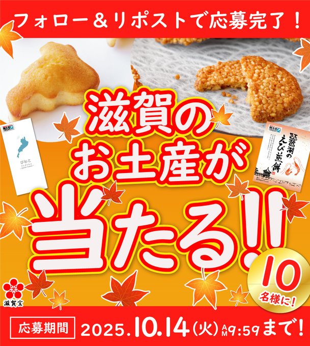 賞品:琵琶湖のえび煎餅&びわこフィナンシェ(10名様)